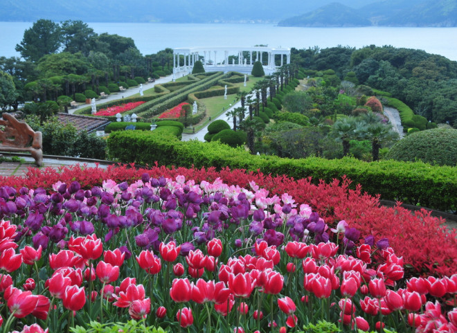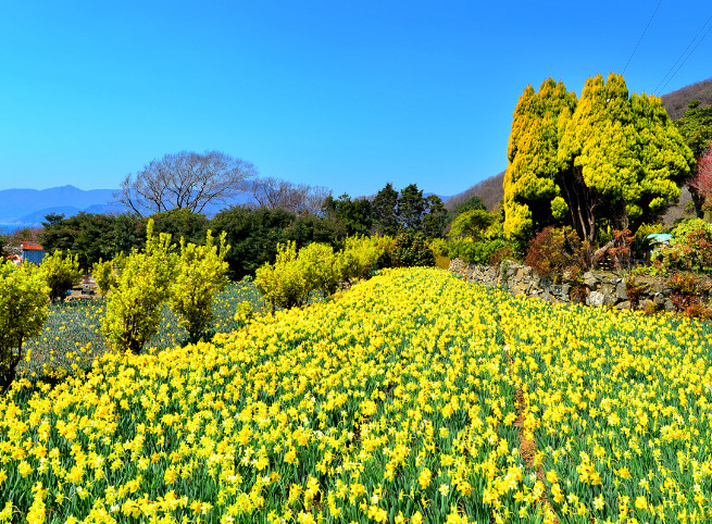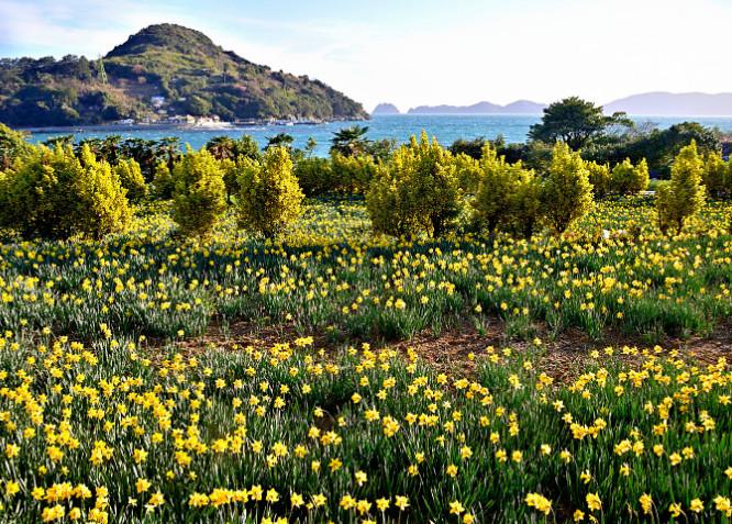 거제 8경 중 하나인 공고티는 거제시의 동남쪽에 위치한다. 지형이 엉덩이처럼 튀어나와 있어 ‘공곶’이라 불리는 이곳은 1957년 강명식·지상악 노부부가 삽과 곡괭이를 들고 언덕 위 1만6000㎡의 밭을 수십 년 동안 일구며 일구어 낸 곳이다. 봄이 되면 붉은 동백꽃과 노란 수선화가 장관을 이루며 입소문이 난다. 공고티산 기슭이 계단식으로 이어져 있고 여기저기 야자수와 천리향과 물리향, 눈꽃 유화가 푸른 바다와 어우러져 수채화 같은 느낌을 준다.
