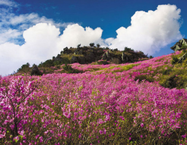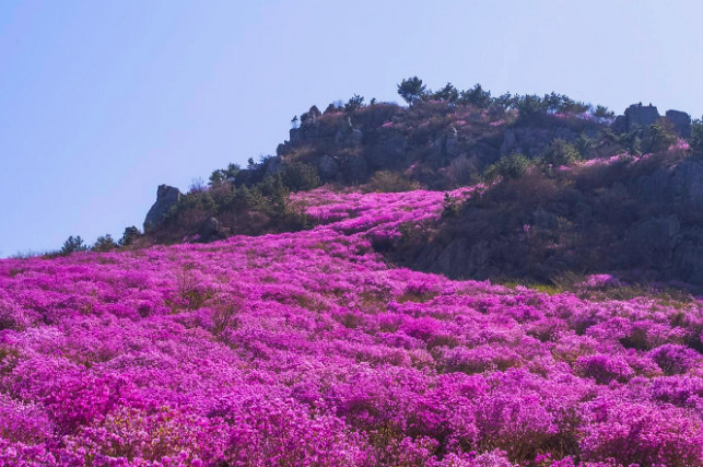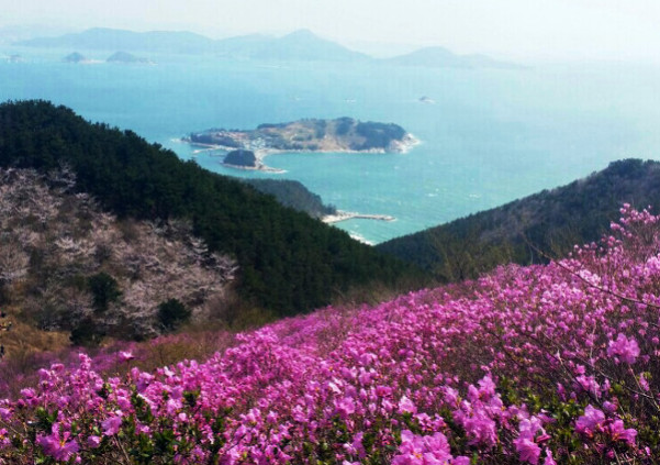 진달래 축제로 유명한 거제도 대금산은 진달래와 벚꽃이 피는 계절에 산행을 하면 산기슭에서 산꼭대기까지 진달래와 벚꽃이 활짝 핀 산이다. 만개. 오르는 길에 진달래꽃 터널도 볼 수 있고 산세가 가파르지 않아 남녀노소 누구나 쉽게 오를 수 있는 좋은 산이다.