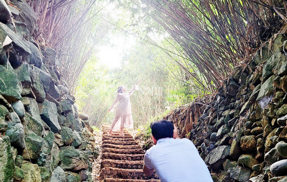 거제도의 명물인 구조라 해수욕장과 가까운 샛바람소리길은 구조라유람선터미널 주차장에 주차를 하고 주차장 맞은편 골목으로 진입하면 갈 수 있다. 진입로 바닥에는 커다란 ‘샛바람소리길’이 칠해져 있어 찾기가 그리 어렵지 않으니 천천히 올라가시면 됩니다. 오르는 길은 대나무 숲길로 이루어져 있는데 길도 길지 않고 경사도 가파르지 않아 이국적 풍경과 함께 기분 좋게 산책하기 좋다. 정상에 오르면 구조라성에서 남해바다를 마음껏 바라볼 수 있어 더없이 좋은 관광명소가 된다.