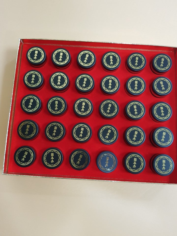 약재의 구성 약재용 흙과 모래 천문동 매문 동성 지황소 지황수 지황마 우스파 구기자 산딸나무 백복령 오미자 인삼 목향 향 백금 부분 차밭 지골피 천초 석창포 원지 분류군 다른 처방에 비해 약재가 비교적 많다. 문동은 공급의 역할 지황은 조혈의 역할 우수와 두충은 사람의 근력강화 구기자나무와 산딸나무는 면역력을 증강 오미자는 영양과 피로회복 작용 신체의 기능을 조절하므로 소화기능이 약한 사람은 한의사의 진단하에 복용하는 것이 좋으며 부작용이 나타날 수 있다.