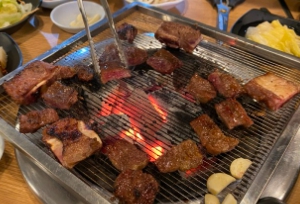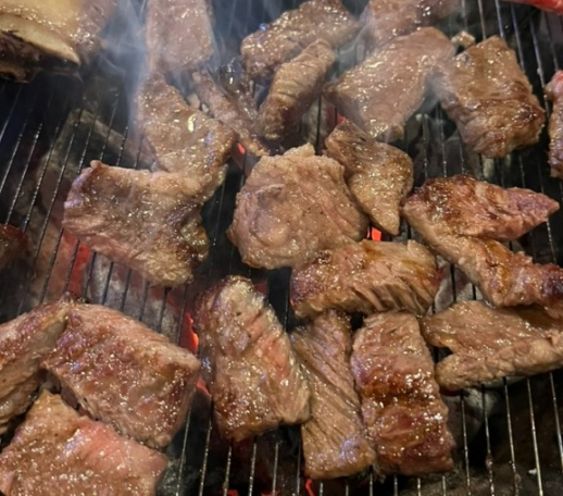 요기는 다른 곳보다 양이 많아서 재빨리 뒤집어줘야 고기가 타지 않아요.