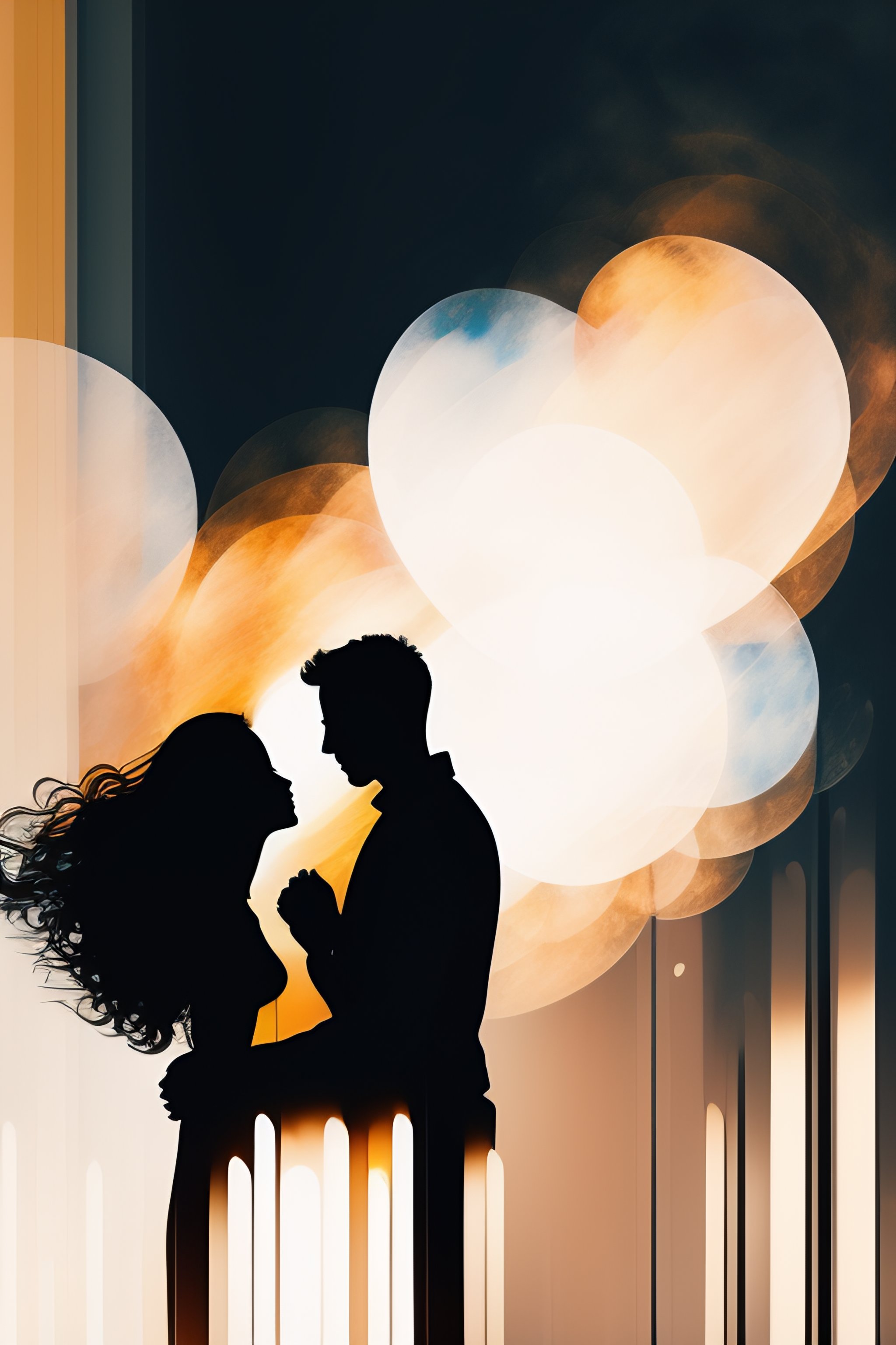 실루엣 ~에서 둘 애인 포옹하다, 중립적 그림 물감, 사랑, 운, 미술, 추상적인