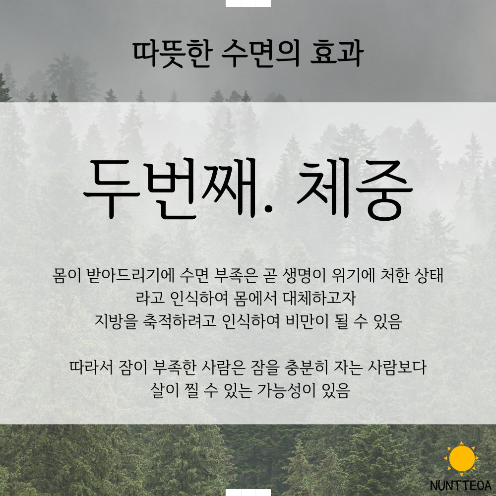 따라서 충분한 수면을 취하지 않는 사람은 충분한 수면을 취하는 사람보다 체중이 증가할 가능성이 더 높습니다.