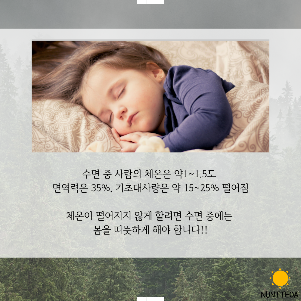 잠자는 동안 사람의 체온은 1-1.5도 떨어집니다.