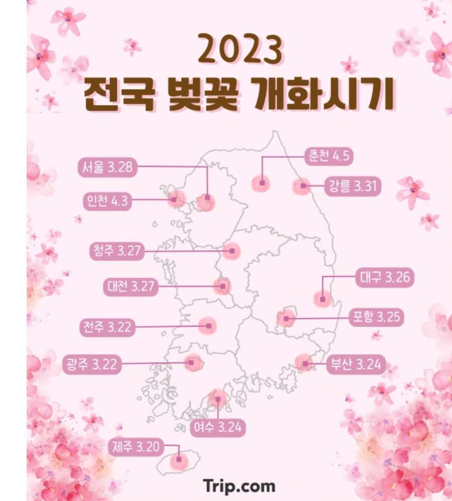 2023 전국 벚꽃 개화시기 정보라고