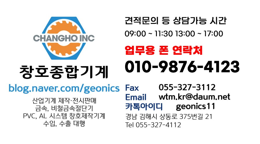 당사는 창호 제조 기계 수입 및 산업용 기계 유통을 전문으로 하는 회사입니다.