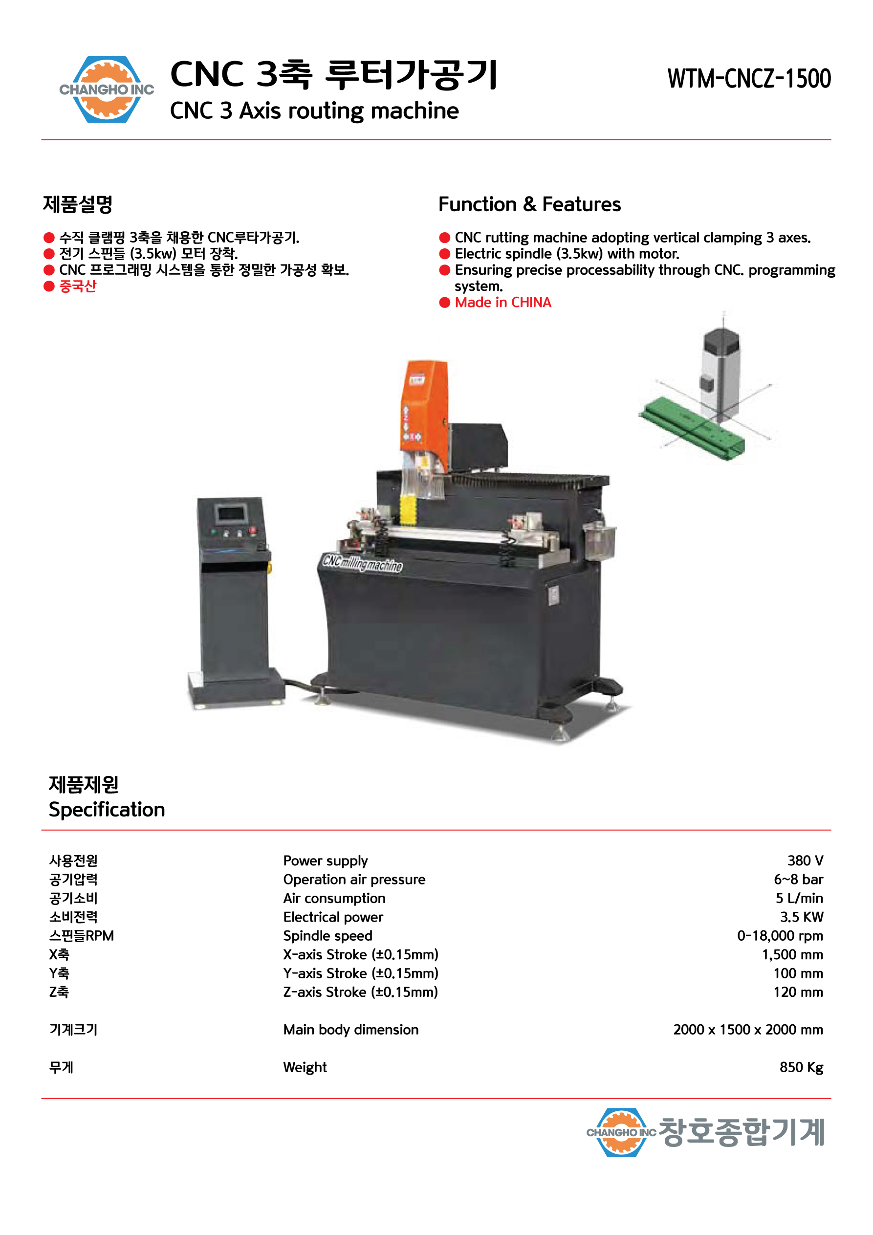 CNC 3축 라우터 머신 WTM-CNCZ-1500
