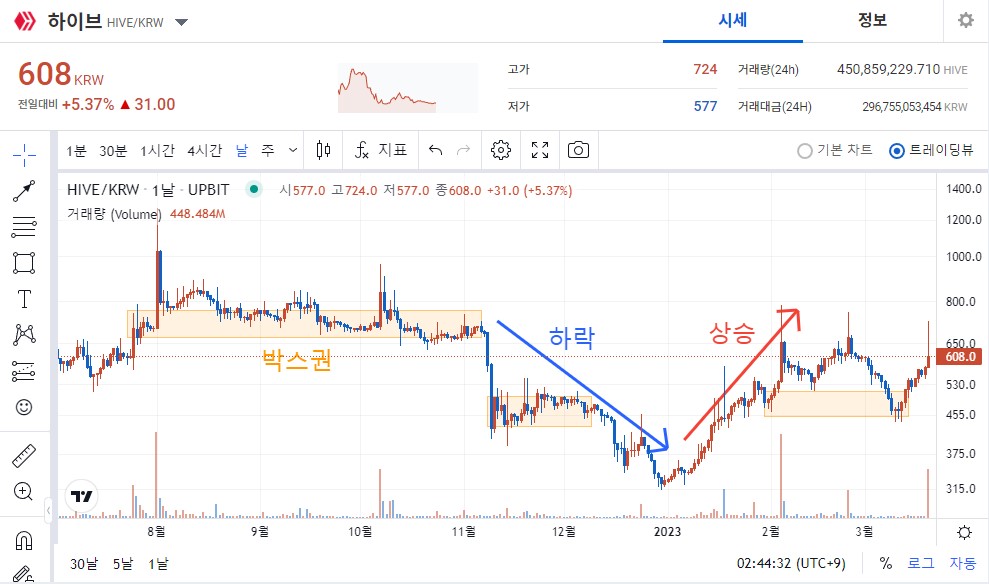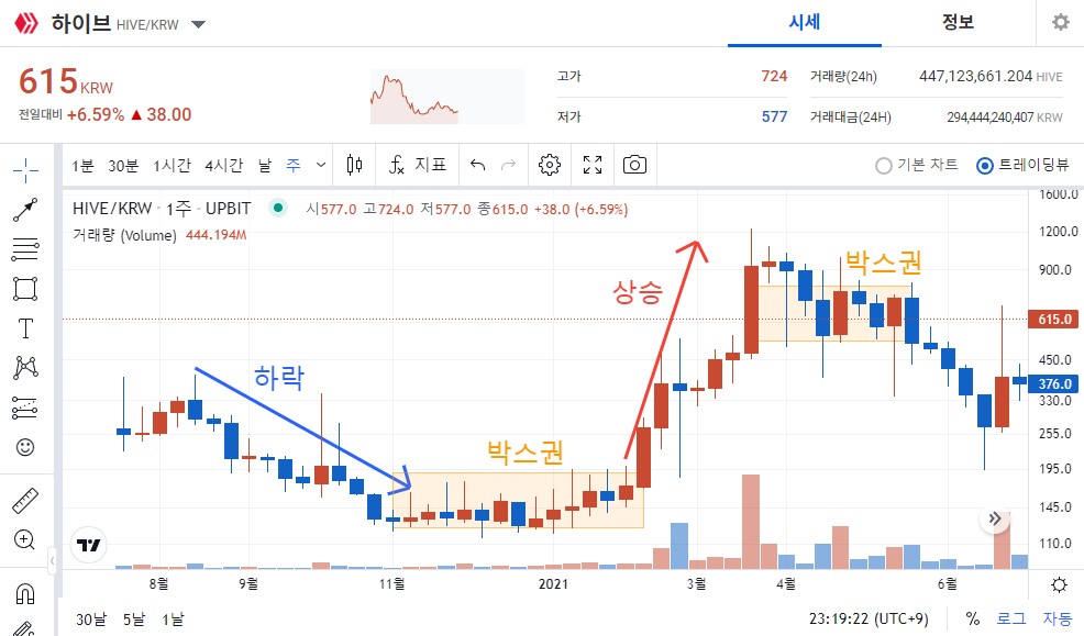 이후 저항구간에서 꾸준하게 박스를 당기는 모습을 보였지만